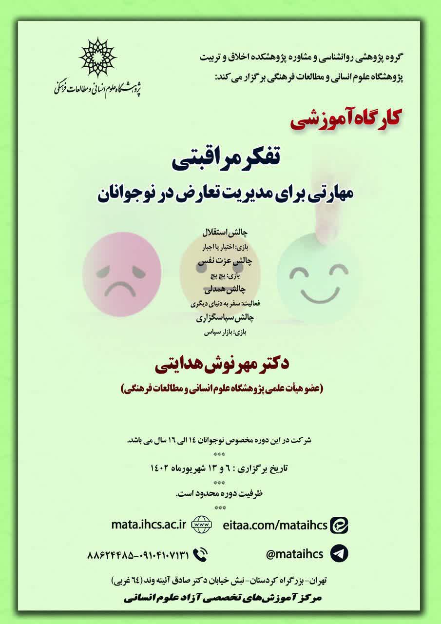 کارگاه آموزشی حضوری تفکر مراقبتی، مهارتی برای مدیریت تعارض در نوجوانان
