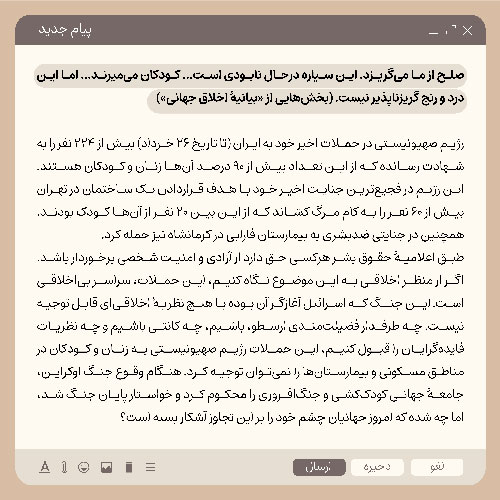 پیام خانۀ اخلاقپژوهان جوان به ۱۰۰۰ فیلسوف اخلاق برای محکومیت علنیِ حملات اسرائیل به ایران