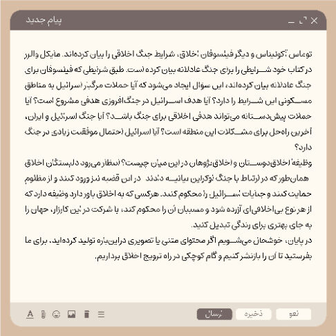 تیم رسانهایِ خانۀ اخلاقپژوهان جوان پیامی را به ۱۰۰۰ فیلسوف اخلاق فرستادهایم و از آنها خواستهایم نظرشان را دربارۀ تجاوز اسرائیل به خاک ایران بیان کنند.