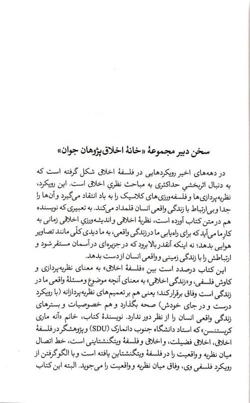 این کتاب دربارۀ فلسفۀ اخلاق و مسائل مربوط به آن است. نیاز شدید به بازنگری در فعالیتهای موجود در فلسفۀ اخلاق، نویسنده را بر آن داشته است تا دست به قلم ببرد. از نظر نویسنده، با وجود تلاشهای زیادی که در طول این سالها شده است تا فلسفۀ اخلاق بتواند نظریاتی را مطرح کند که بنیاد قوی و راهنمایی عملی برای افراد باشند، ولی با دشواریهای زیادی روبهرو شده است.