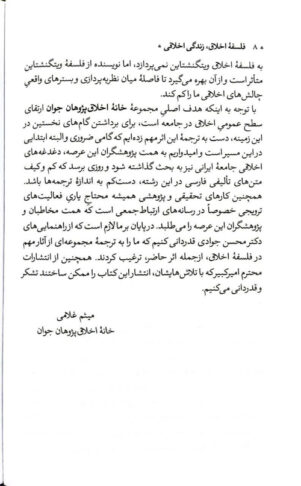 این کتابِ مهم، یکی از مجموعه کتابهایی است که در خانۀ اخلاقپژوهان جوان به پیشنهاد استادان محسن جوادی، محمد لگنهاوزن، سیدحسن اسلامی اردکانی و دیگر استادان، ترجمه شده و در اختیار فارسیزبانانِ علاقهمند به مسائل فلسفۀ اخلاق قرار گرفته است. تا پایان سال جاری، چند عنوان دیگر از این مجموعه نیز به چاپ میرسد.